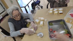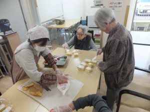 投稿日: 2025年12月23日 投稿者: ibeauStaffクリスマスケーキ 今回のレクリエーションはお菓子作り クリスマスケーキを作りました 甘いクリームのにおい イチゴとキュウイの香り ほんとにスイーツです。