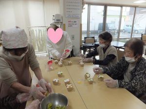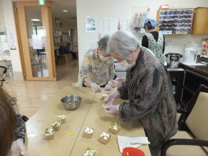 今回のレクリエーションはおやつ作り ひな祭りケーキを作りました。