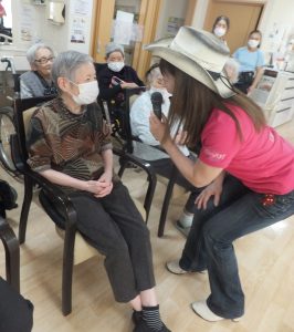 今回のレクリエーションは、カントリーダンス アメリカンな衣装もオシャレですよね。